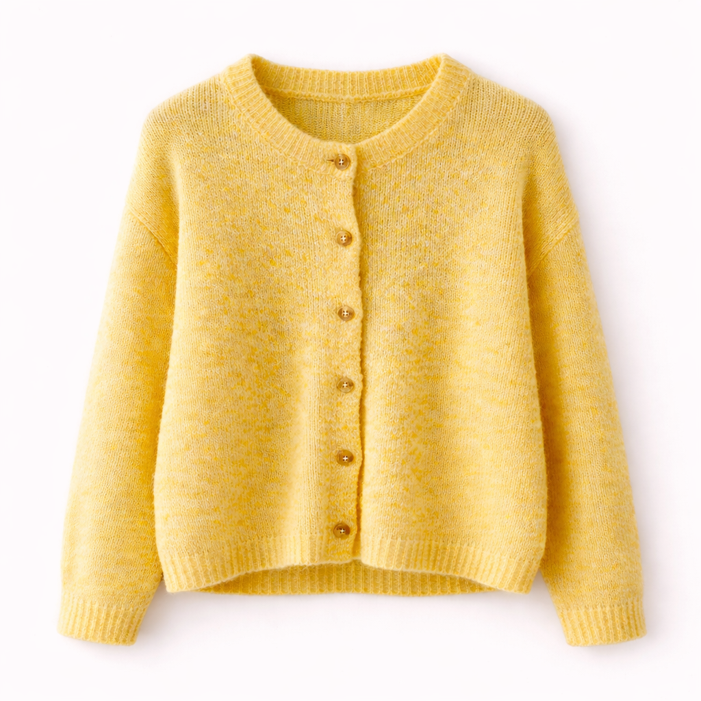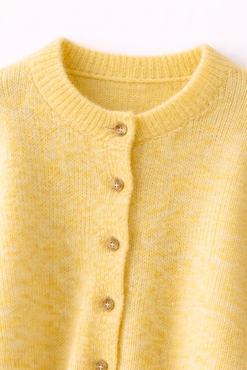 Mélange de laine et de matière résistantes aux lavages, ce cardigan chiné illumine la tenue et permet d’associer de nombreuses couleurs, car le jaune se marie avec les couleurs froides (notamment gris et bleu), tout autant que chaudes (toutes les nuances de marron).