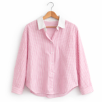 Fraîche et discrète, elle attire le regard avec son col blanc et ses rayures discrètes blanches en tissage pinpoint. Elle nous transporte immédiatement au bord de la mer, avec ses jolies couleurs et ses moments de contemplation unique de la beauté de la nature.