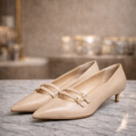 Le petit talon offre une hauteur idéale pour allier élégance et confort, permettant de porter ce modèle aussi bien au quotidien que lors d’occasions plus habillées.